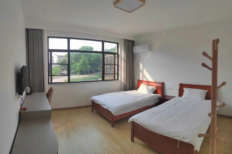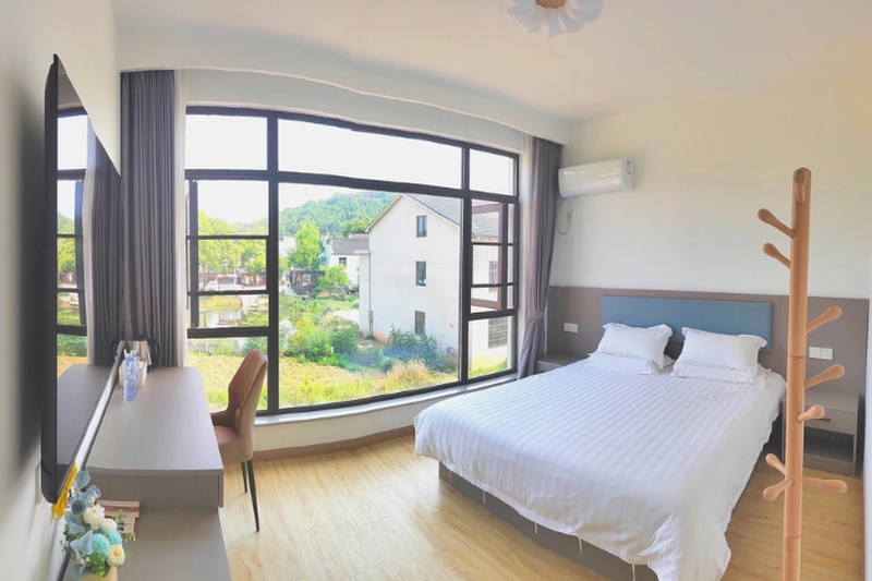 民宿位于高淳国际慢城大山脚下的大山村,毗邻大山水库,村内建筑整体呈现徽派建筑风格,与周边自然环境相结合。登上大山顶上的文峰塔,俯瞰整个大山村,绿水青山人家绕的娴静田园画卷映入眼帘。