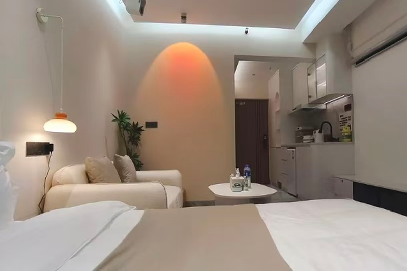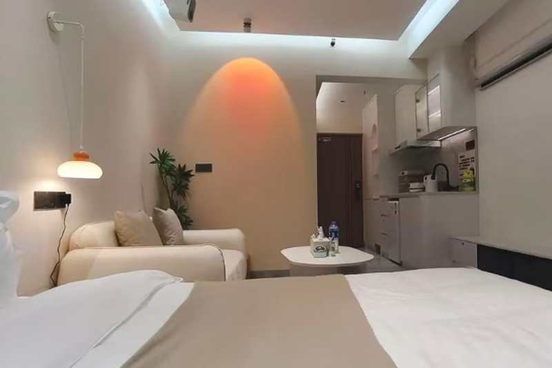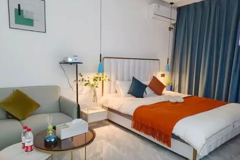 客房干净卫生,环境舒适,采光充足,装修风格简约大气,家电由小爱同学智能语音控制,配有超大投影仪。客房都备有一次性用品,毛巾、拖鞋、牙刷齐全。